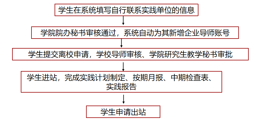 1.学生自行联系基地实践流程: