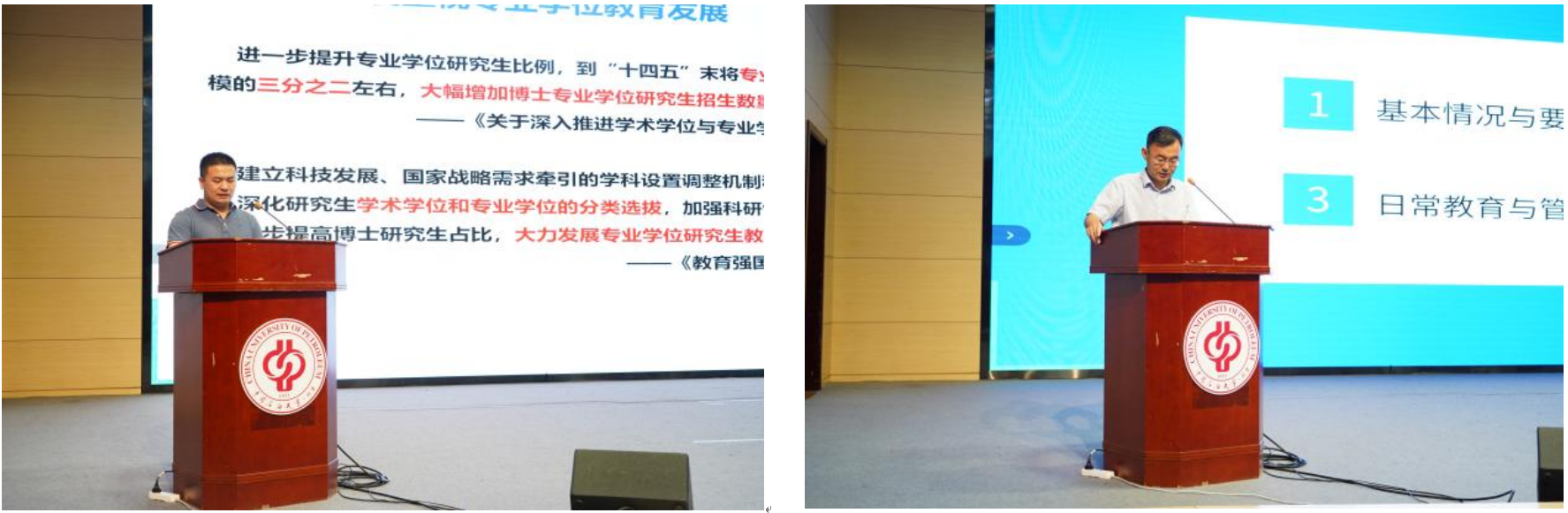 研究生院专业学位办副主任王喜龙作专业实践动员报告,介绍了专业实践相关政策。学生工作部(处)副部(处)长、学生资助管理中心主任张延港围绕专业实践驻外期间学生日常管理、支部管理等相关注意事项进行了专题讲解。